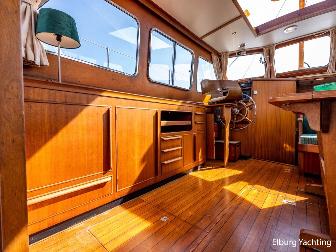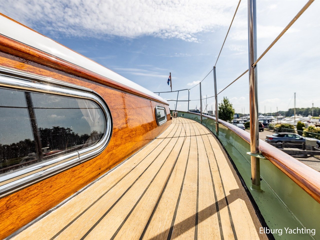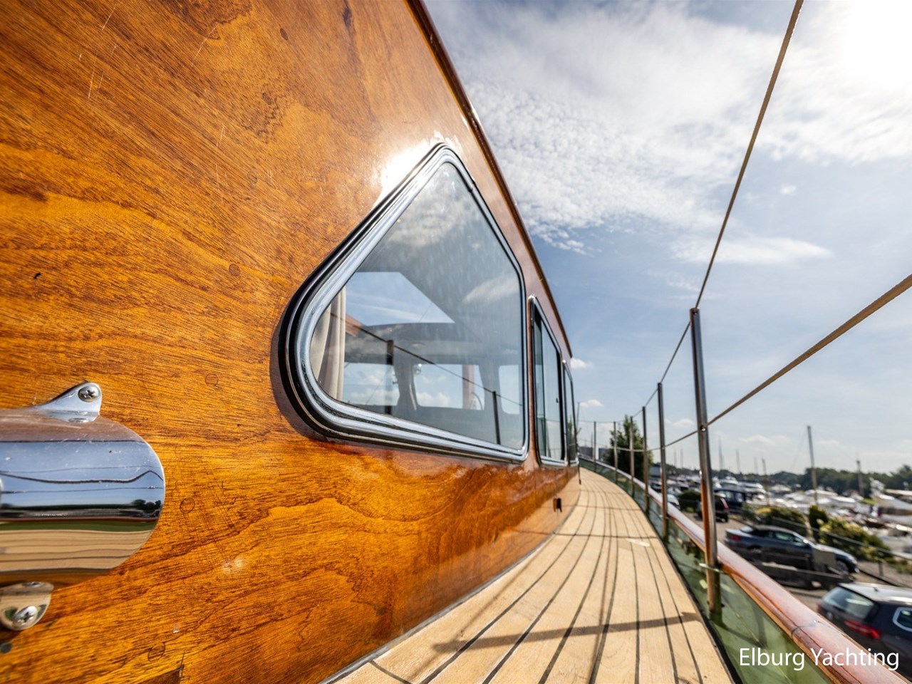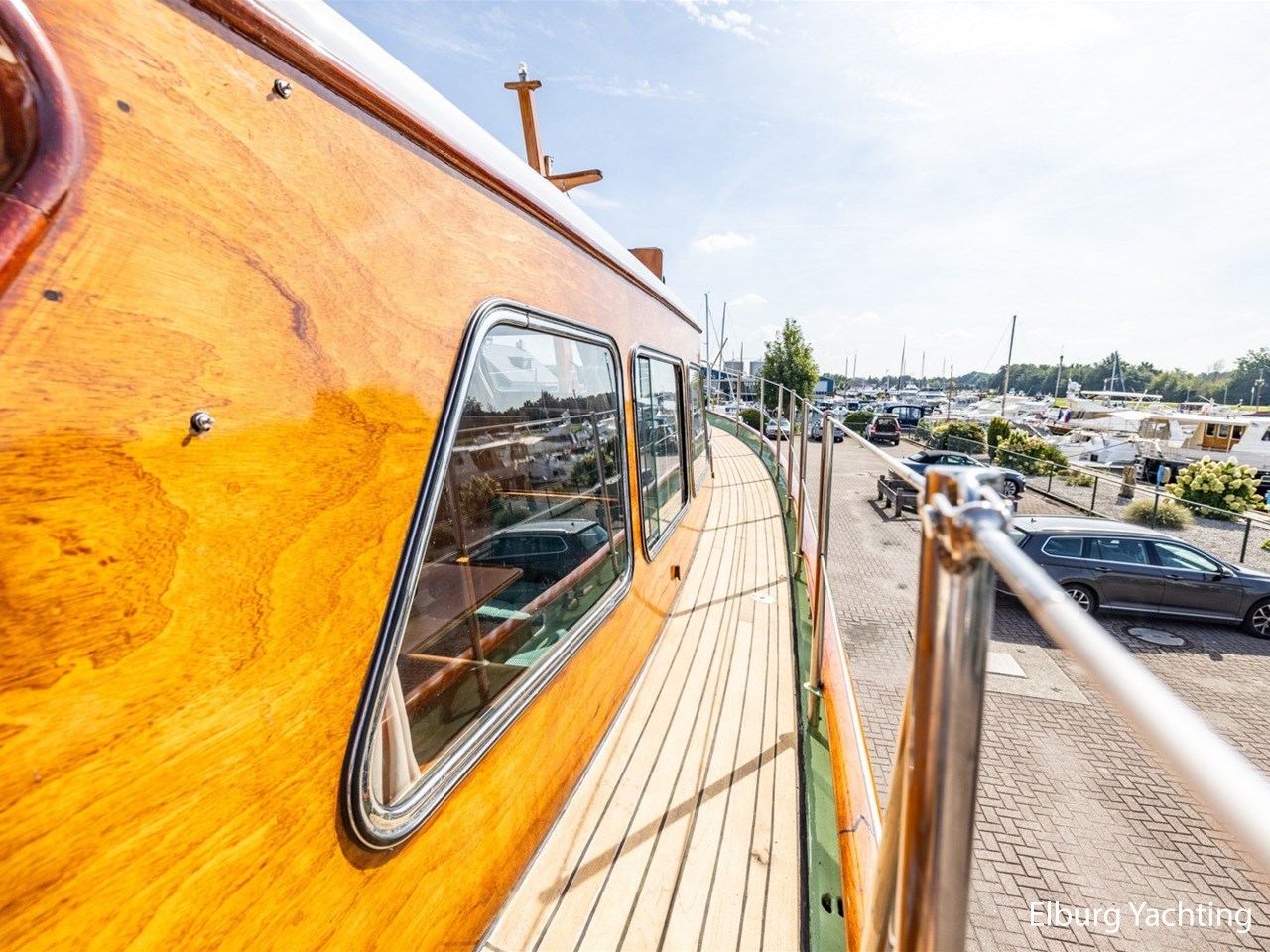 Het schip heeft in 2022 volledige renovatie van teakdek ondergaan, ruime hoge open kuip, 2e stuurstand, r.v.s. bolders, hoge dubbele reling, alle kitranden zijn vernieuwd 2022, klapbare teakhouten mast, ledverlichting door gehele boot, Victron Digital Multi Control, stroomsysteem, veel bergruimte. De doorvaarthoogte met geklapte mast is ca. 2,50m. Het schip afgelopen winterseizoenen binnen gelegen.