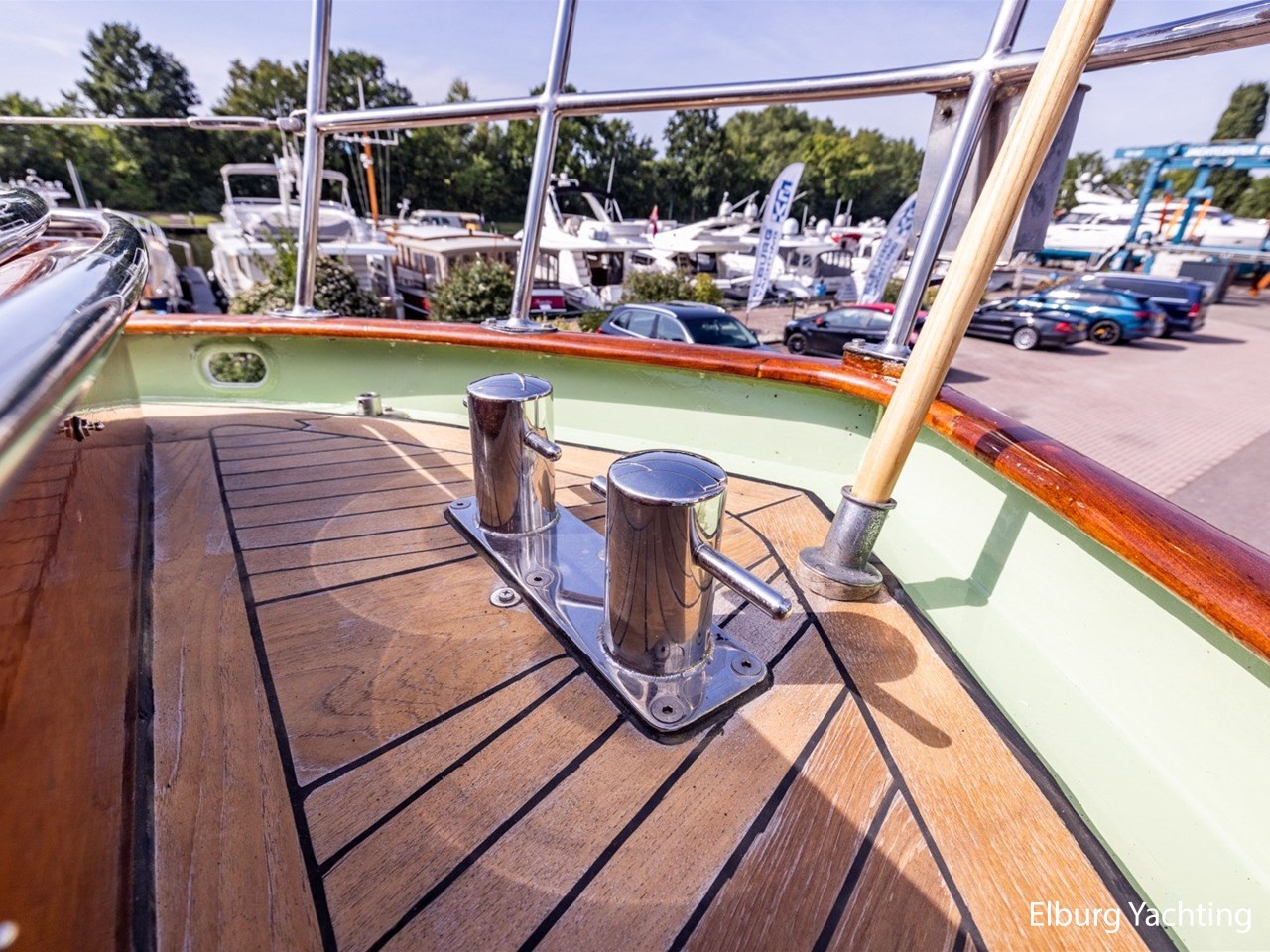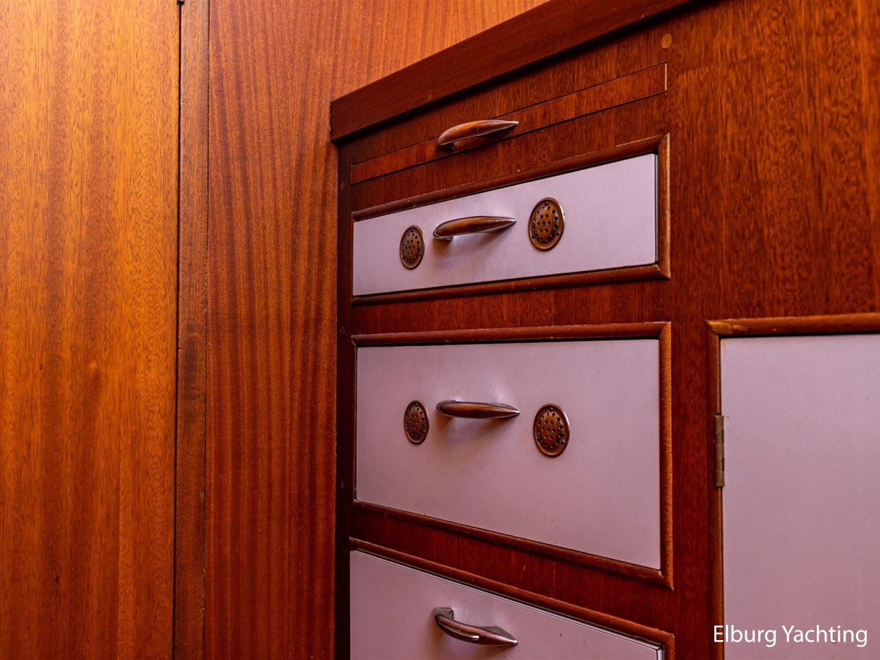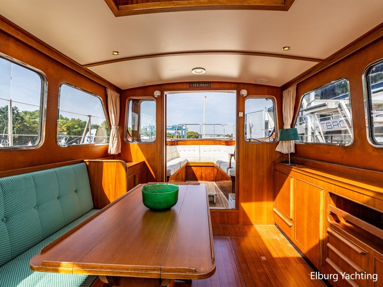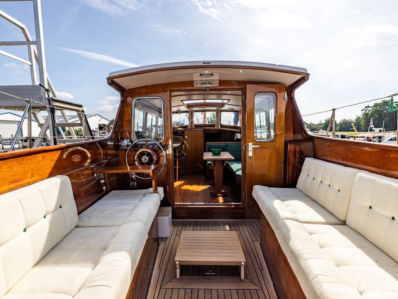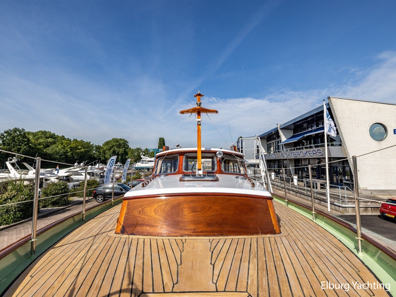 Het schip heeft in 2022 volledige renovatie van teakdek ondergaan, ruime hoge open kuip, 2e stuurstand, r.v.s. bolders, hoge dubbele reling, alle kitranden zijn vernieuwd 2022, klapbare teakhouten mast, ledverlichting door gehele boot, Victron Digital Multi Control, stroomsysteem, veel bergruimte. De doorvaarthoogte met geklapte mast is ca. 2,50m. Het schip afgelopen winterseizoenen binnen gelegen.