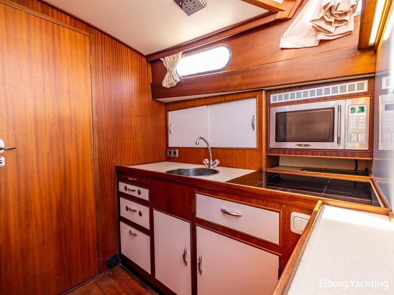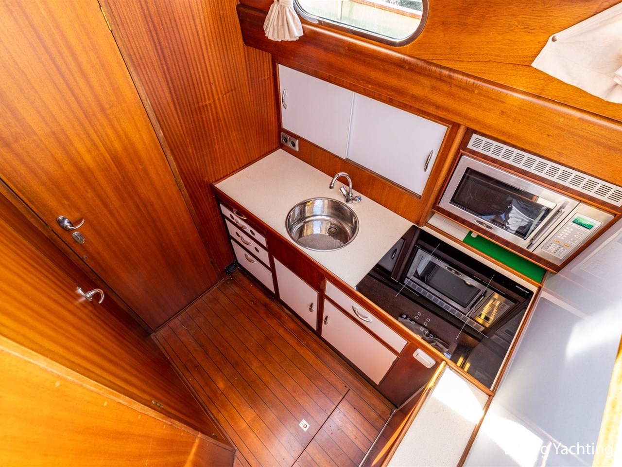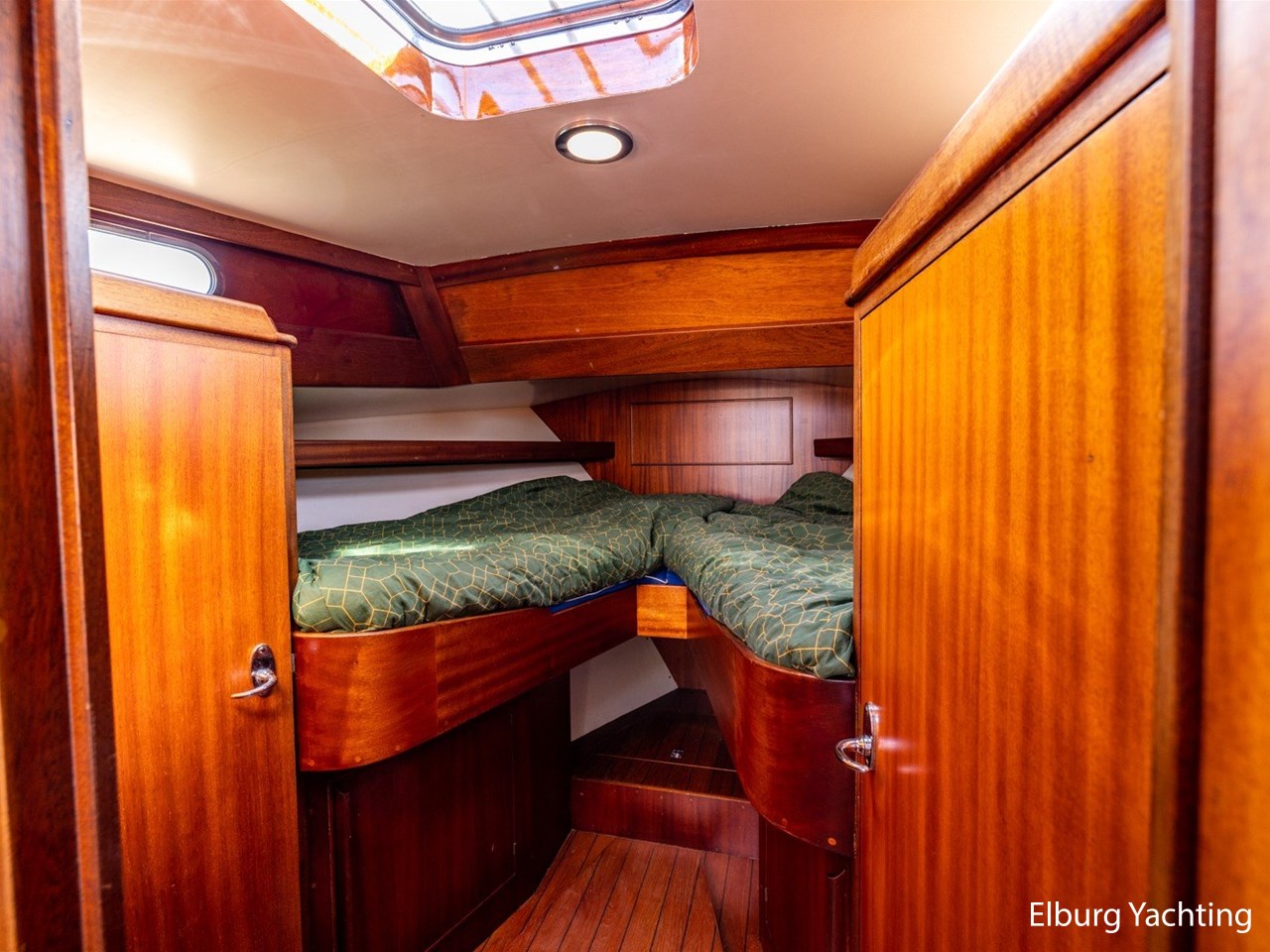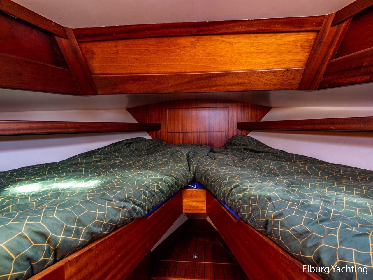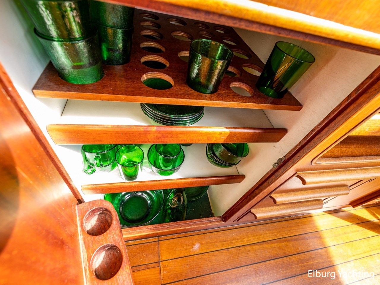 De Trewes Spitsgatkotter 12.00 is in 1968 ontworpen door de beroemde Naval Architect SM van der Meer en gebouwd door Van Dam scheepswerf in Aalsmeer. Het is een uniek, charmant en custom exemplaar met klassieke uitstraling. De open kuip en salon zijn door 2 openslaande deuren met elkaar verbonden, ruime open kuip beschikt over een U-vormige zitting, welke uitermate geschikt is om met gasten een heerlijke dag te genieten op het water, 2e stuurstand buiten is aanwezig, voorhut met 2 vaste kooien en royale hang/legkasten, ruime kombuis aan SB met ingebouwde Electrolux koelkast, r.v.s. aanrechtbak. Aan BB grote toiletruimte aanwezig met vaste wastafel. In salon aan SB ruime L-bank, barkast aan SB, dressoir met diverse kastjes en laden aan BB. Vloeren in voorhut, kombuis en salon afgewerkt met sierlijn teak. Securit glas in koperverchroomde profielen, vaste ramen in achterschot en deuren, middelste zijramen schuivend, 1 voorfront en 1 half klappend raam. Teak met gerubberde naden over stalen dek. Gehele opbouw van 20 mm. mahonie hechthout, daken van 3 x 7 mm Occumé hechthout gelamineerd. Groot schuifluik in salondak. stalen zelflozende kuipvloer, bekleed met teakhout met gerubberde naden. Kuipbanken en -randen geheel in massief mahonie. Kuip voorzien van volledige overdekte tent met zichtvensters.